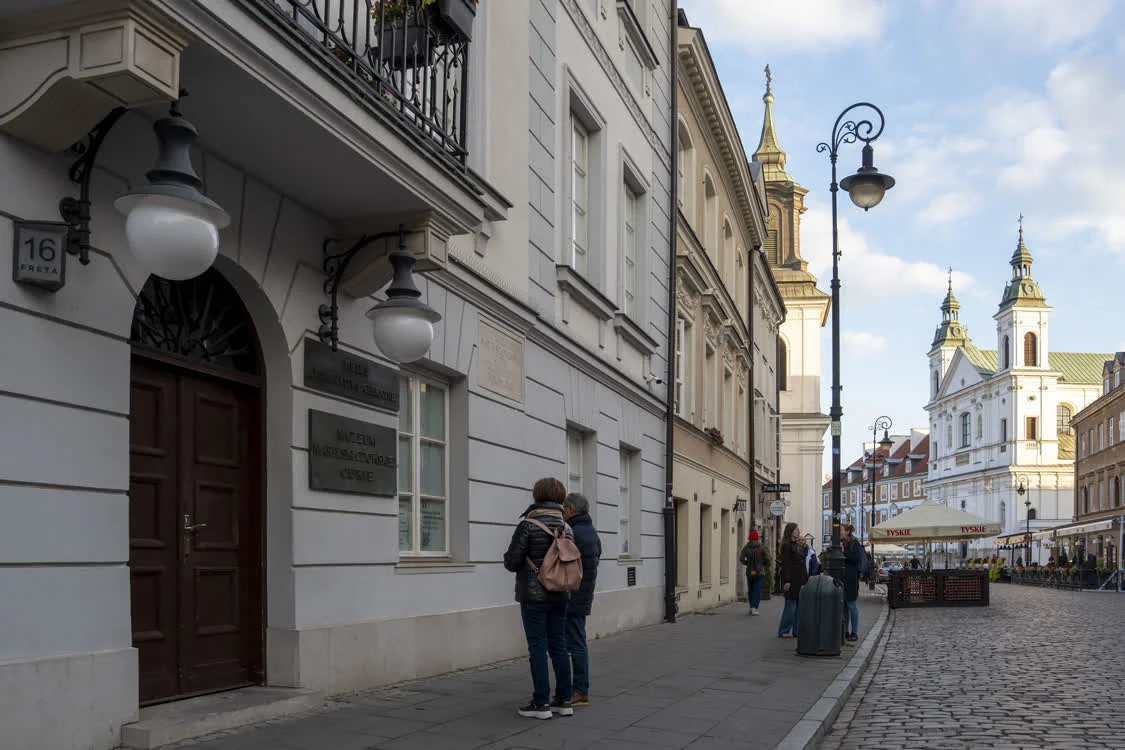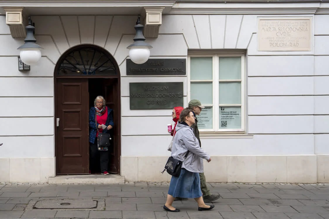 10月7日,在波兰华沙,人们经过玛丽·斯克洛多夫斯卡-居里博物馆外。新华社记者 夏原一 摄