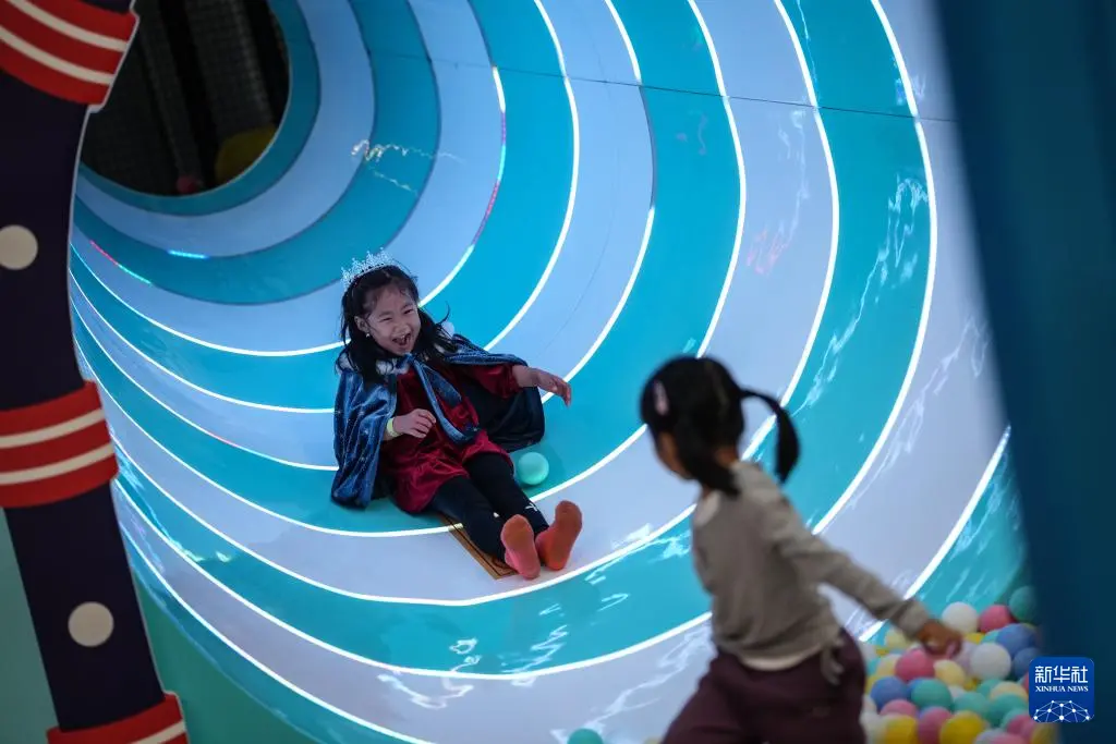 10月8日,小朋友在沈阳粮仓文化产业创意园内的“快乐专+”游乐场体验游乐项目。