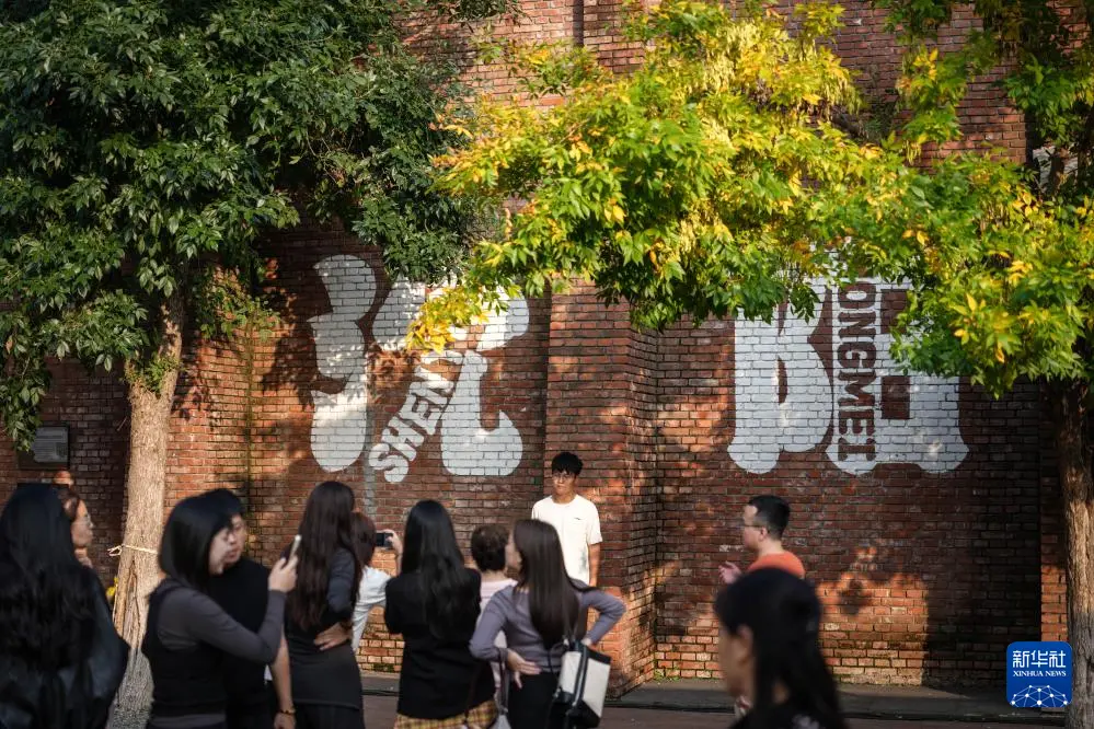 10月1日,游客在沈阳红梅文创园游览。