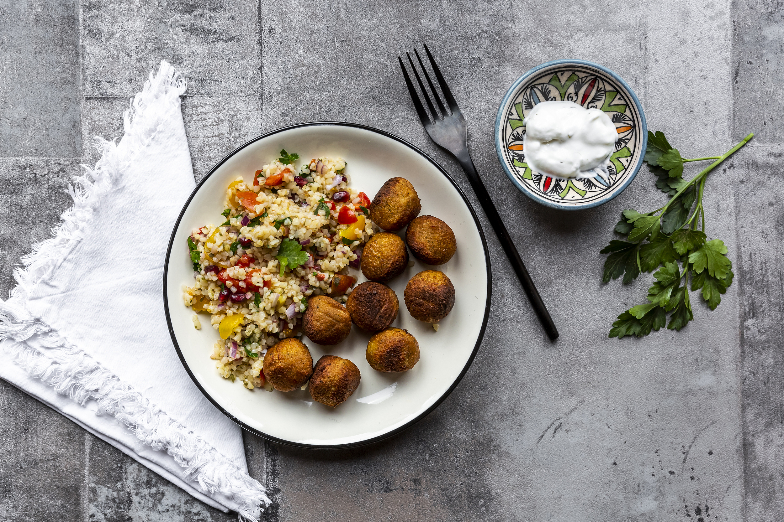 素食届鸡米花就是它,外酥里嫩,妥妥的追剧神器。鹰嘴豆泥加入胡萝卜、洋葱和面包糠,搓成丸子下锅煎至金黄。豆类+谷物+坚果搭配食用,低卡高蛋白,让营养吸收更全面!