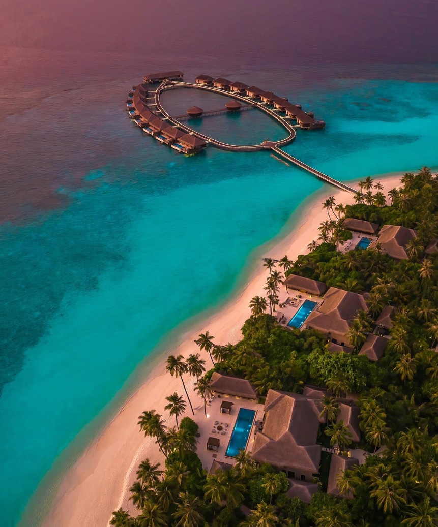 这座位于马尔代夫北部的私人海上庄园,除了别墅还有18栋房屋建在水上,推窗见海、风筝冲浪、九洞高尔夫都是基本配置,深海迷你潜艇和珊瑚礁潜水探险才是天花板,更有别墅管家24小时待命,连椰子都是用镀金器为你开的。