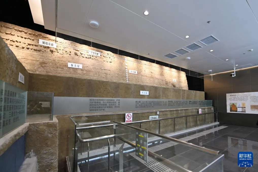近日,位于天津地铁4号线东南角站的天津卫故城东城墙遗址文物展厅正式开放,展厅内21米长的城墙遗址层次分明,让乘客在出行时也能了解天津历史。