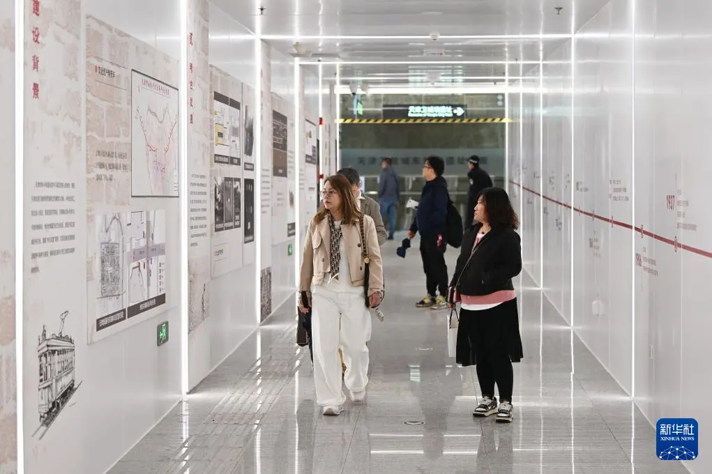 10月10日,地铁乘客前往天津卫故城东城墙遗址文物展厅参观。