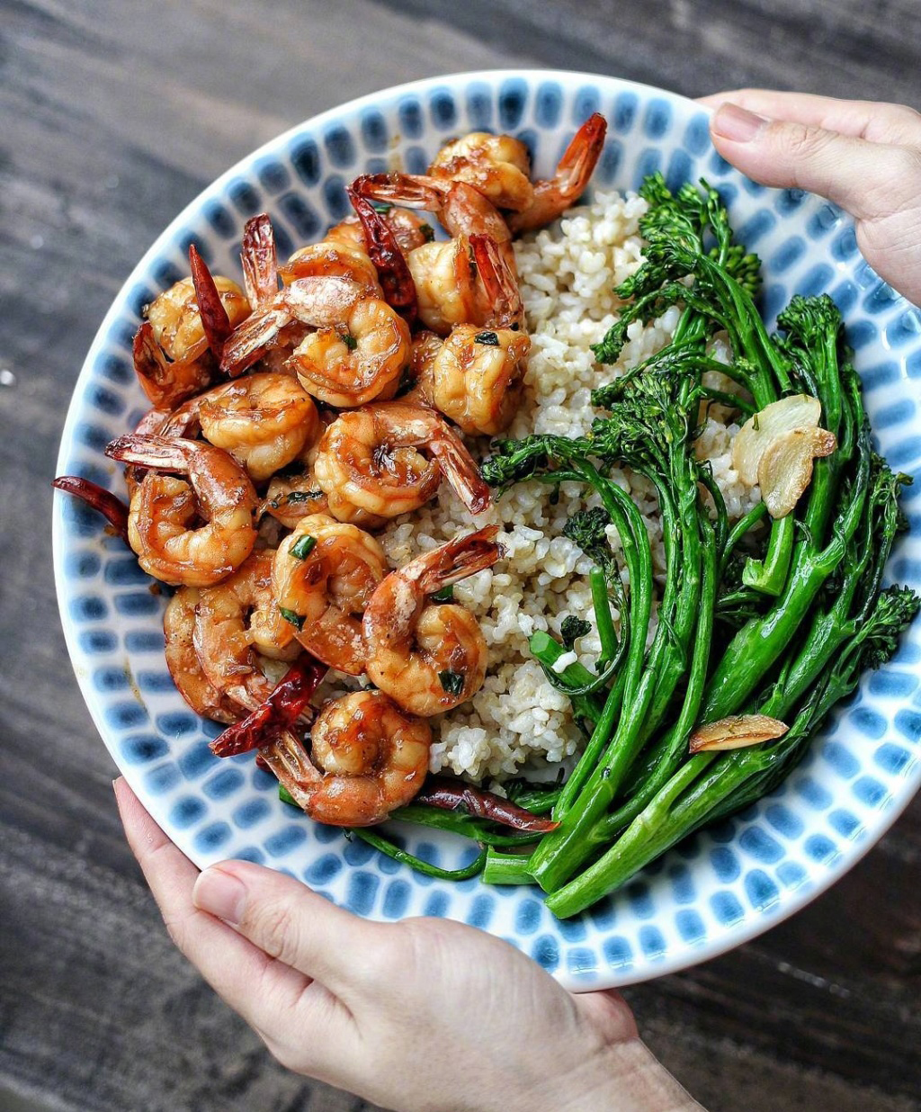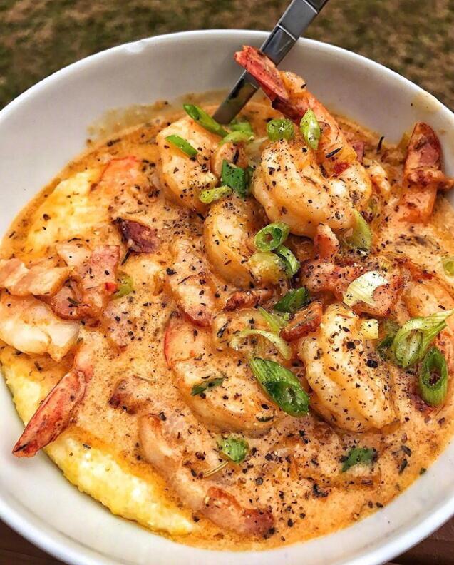 米饭表面淋上蛋黄酱,摆上开背虾仁,铺满马苏里拉芝士,烤箱 180℃烤 5 分钟,拉丝能拉半米长!这道菜也是卡戴珊家的早餐常备,外酥里嫩香到跺脚,如果能选到带虾黄的虾仁,风味更是直接翻倍!