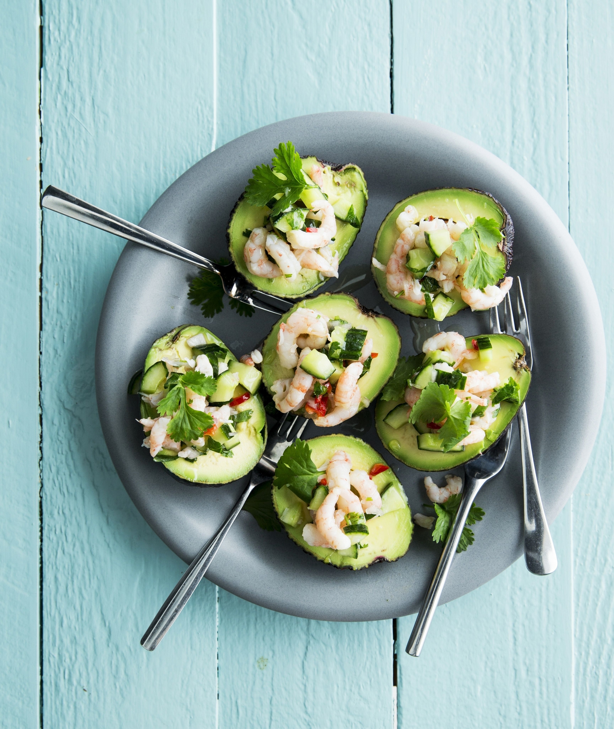 刷到无数ins博主都晒过的这款懒人版虾仁杯,颜值可以说是非常的哇塞!提前把牛油果挖成小碗,虾仁用橄榄油煎到微焦,拌上青柠汁、黑胡椒和海盐,塞进牛油果杯里,一口一个。