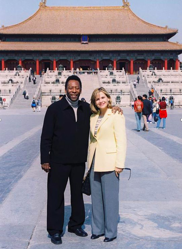 2002年4月,球王贝利携妻子游览故宫。