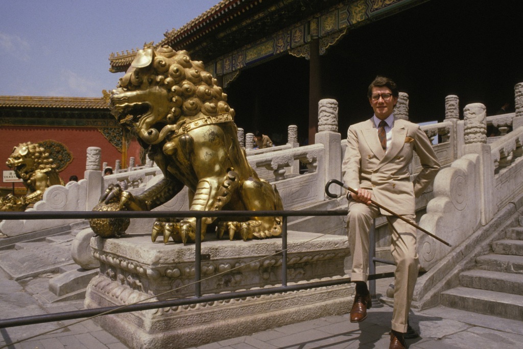 1985年5月,法国著名时装设计师伊夫·圣·洛朗(Yves Saint Laurent)在故宫博物院留影。当时,Yves Saint Laurent的中文翻译还不是“圣罗兰”,而是“伊夫-圣-洛朗”。