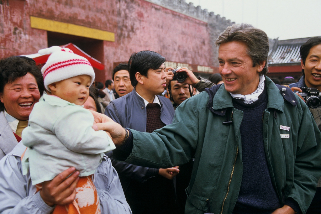 1987年11月11日,著名影星阿兰·德隆游览故宫。