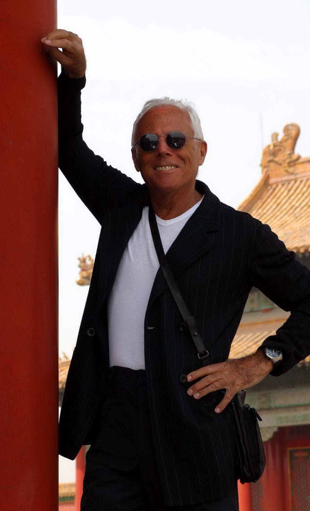 2004年4月15日,意大利著名服装设计师乔治・阿玛尼(GIORGIO ARMANI)在故宫留影。