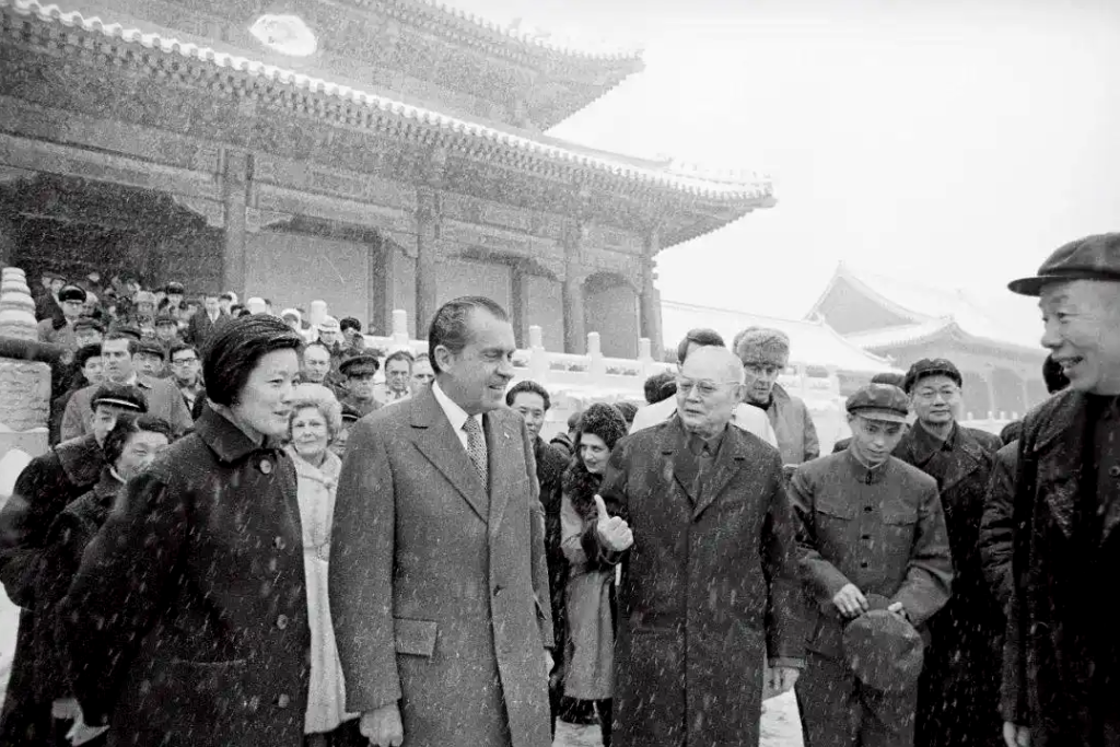 1972年2月25日,叶剑英陪同访华的美国总统尼克松等游览故宫博物院。中国新闻周刊/人民视觉 图