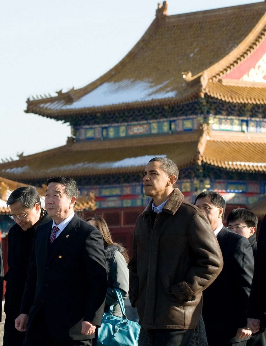 2009年11月17日,时任美国总统奥巴马(中)参观故宫博物院。