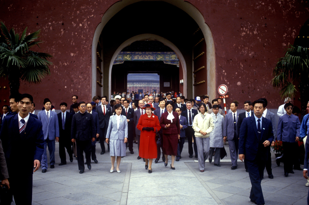 1986年10月12日,英国女王伊丽莎白二世对中国进行国事访问期间参观故宫。这是历史上英国国家元首首次访华。