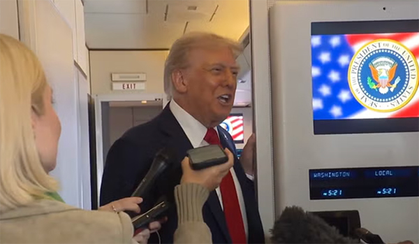 当地时间10月12日,特朗普在“空军一号”上接受媒体采访。 视频截图