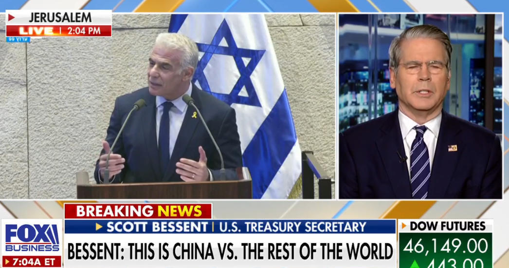 10月13日,美国财长贝森特接受福克斯商业频道采访