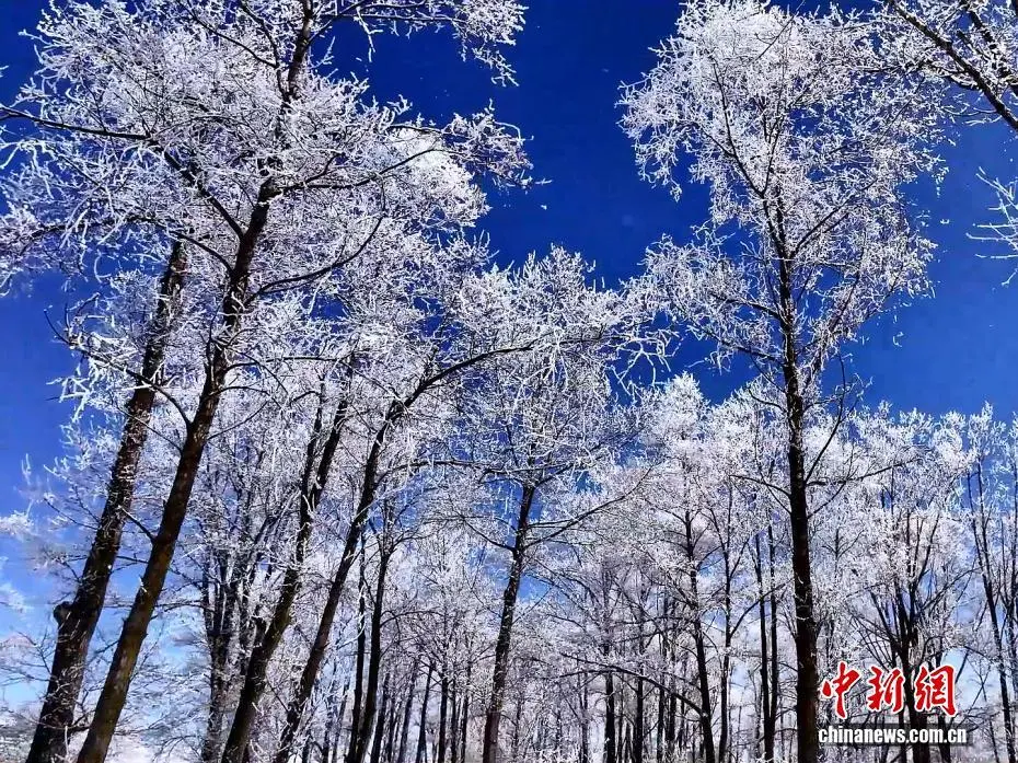高原深秋,位于祁连山青海片区的青海省海北州门源回族自治县、祁连县等地迎来首场降雪。初雪过后的祁连山下浩门河清冽蜿蜒,岗什卡雪峰巍峨延绵,村庄、田野和山川披上了一层银白的薄纱,构成了一幅美妙的画卷。图为树木枝头挂上白雪。马思琦 摄