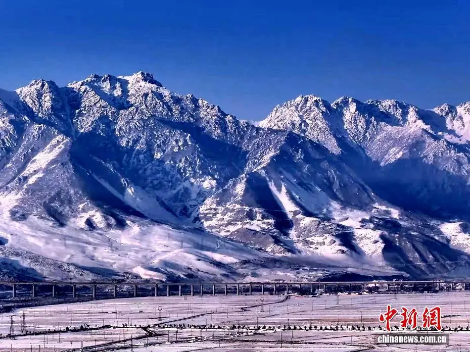 高原深秋,位于祁连山青海片区的青海省海北州门源回族自治县、祁连县等地迎来首场降雪。初雪过后的祁连山下浩门河清冽蜿蜒,岗什卡雪峰巍峨延绵,村庄、田野和山川披上了一层银白的薄纱,构成了一幅美妙的画卷。图为岗什卡雪峰巍峨延绵。马思琦 摄