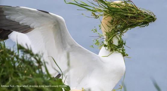 摄影师Alison Tuck在英国贝姆普顿悬崖(Bempton Cliffs)捕捉到了这个搞笑瞬间:一团草正好拍在一只倒霉鸟上。