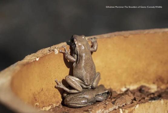 这群青蛙住在一处矿区的钻孔套管里。摄影师Andrew Mortimer写道:“它们的个头太矮,看不到套管外的世界,只能想尽办法往上挤。”这个办法,就是站在另一只蛙蛙的背上。