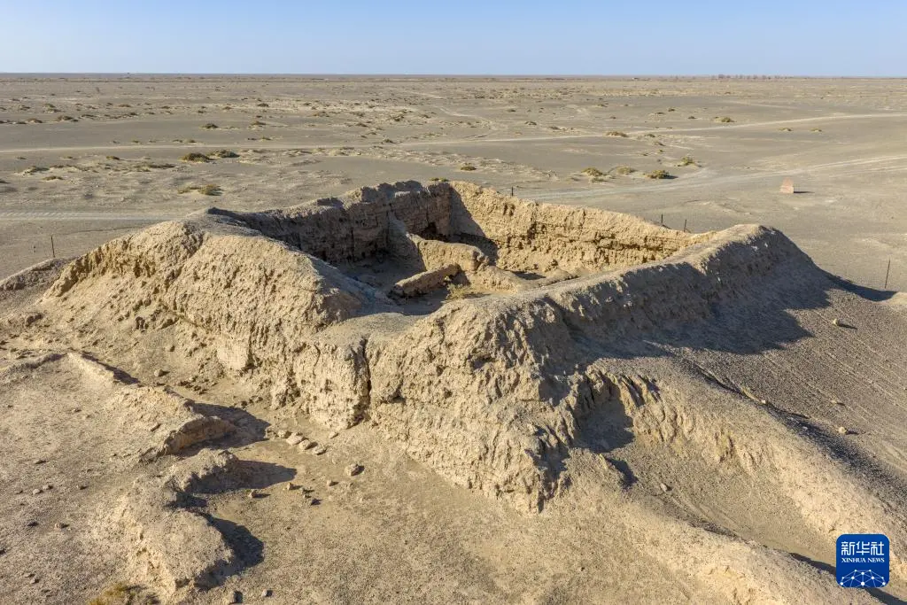 这是11月3日在内蒙古阿拉善盟额济纳旗拍摄的居延遗址中的汉代甲渠候官遗址(无人机照片)。