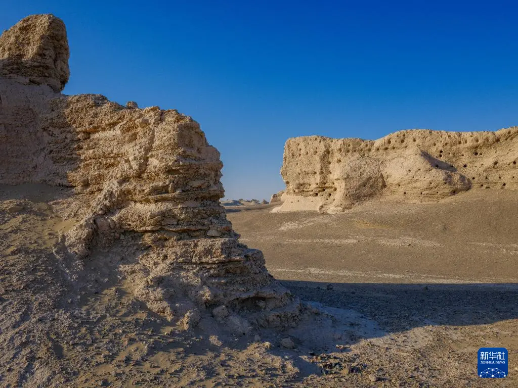 这是11月3日在内蒙古阿拉善盟额济纳旗拍摄的居延遗址中的汉代甲渠候官遗址。