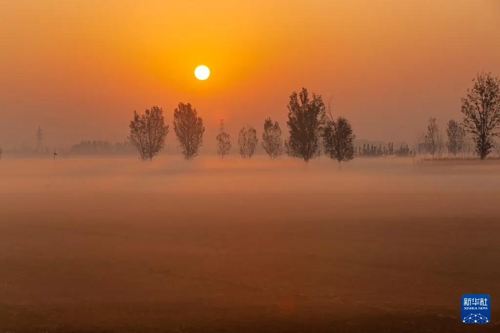 11月5日在山东省淄博市高青县黄河岸边拍摄的晨景。