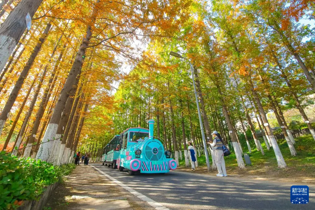 11月5日,游客在山东青岛世界园艺博览园乘车赏景游玩。