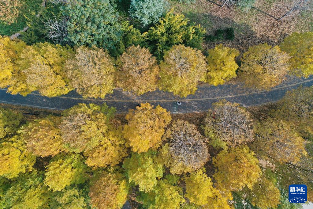 11月2日,市民在河南省焦作市温县子夏公园休闲健身(无人机照片)。