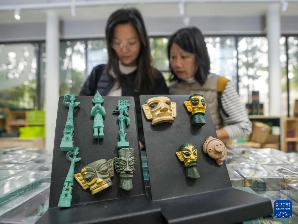 近年来,三星堆遗址重要考古发现成果陆续公布并展出,带动三星堆博物馆的文创产品设计销售热潮。一些文创产品取材于发掘出土的金面罩、青铜器等文物,受到人们的欢迎。