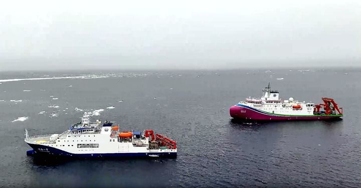 4艘科考船除了各自完成独立作业任务,“协同”是本次科考的关键词和最突出的特点。“雪龙2”号与“极地”号协同在北冰洋高纬度海域开展科考作业,“雪龙2”号在北极冰区为“深海一号”破冰引航,“蛟龙”号与“奋斗者”号作为中国最先进的两个载人潜水器在北极进行水下协同作业……