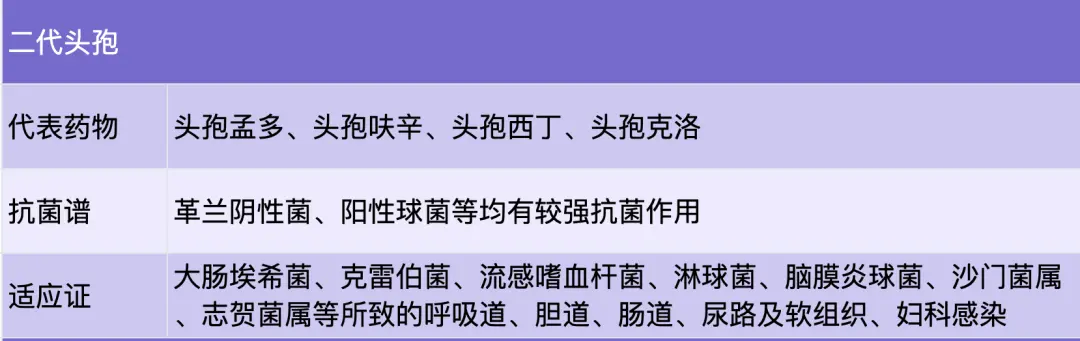 ⚠️ 关于头孢西丁:该药本身属于头霉素类药物,由于它对革兰氏阳性球菌和阴性杆菌都有作用,临床上一般将它归属于头孢二代。
