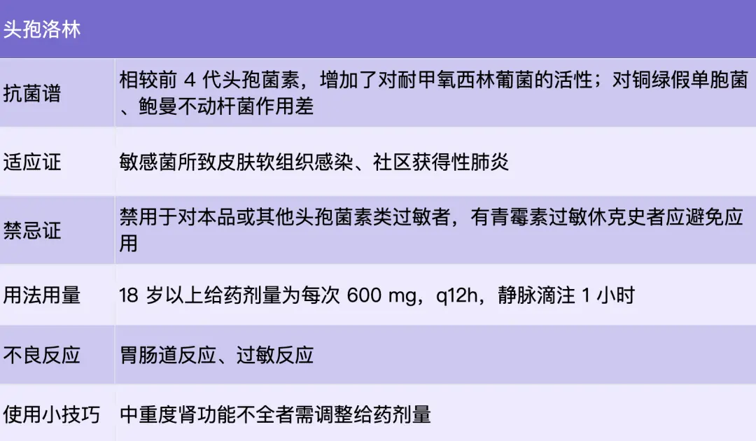 一、五代头孢「代表药物 + 抗菌谱 + 适应证」