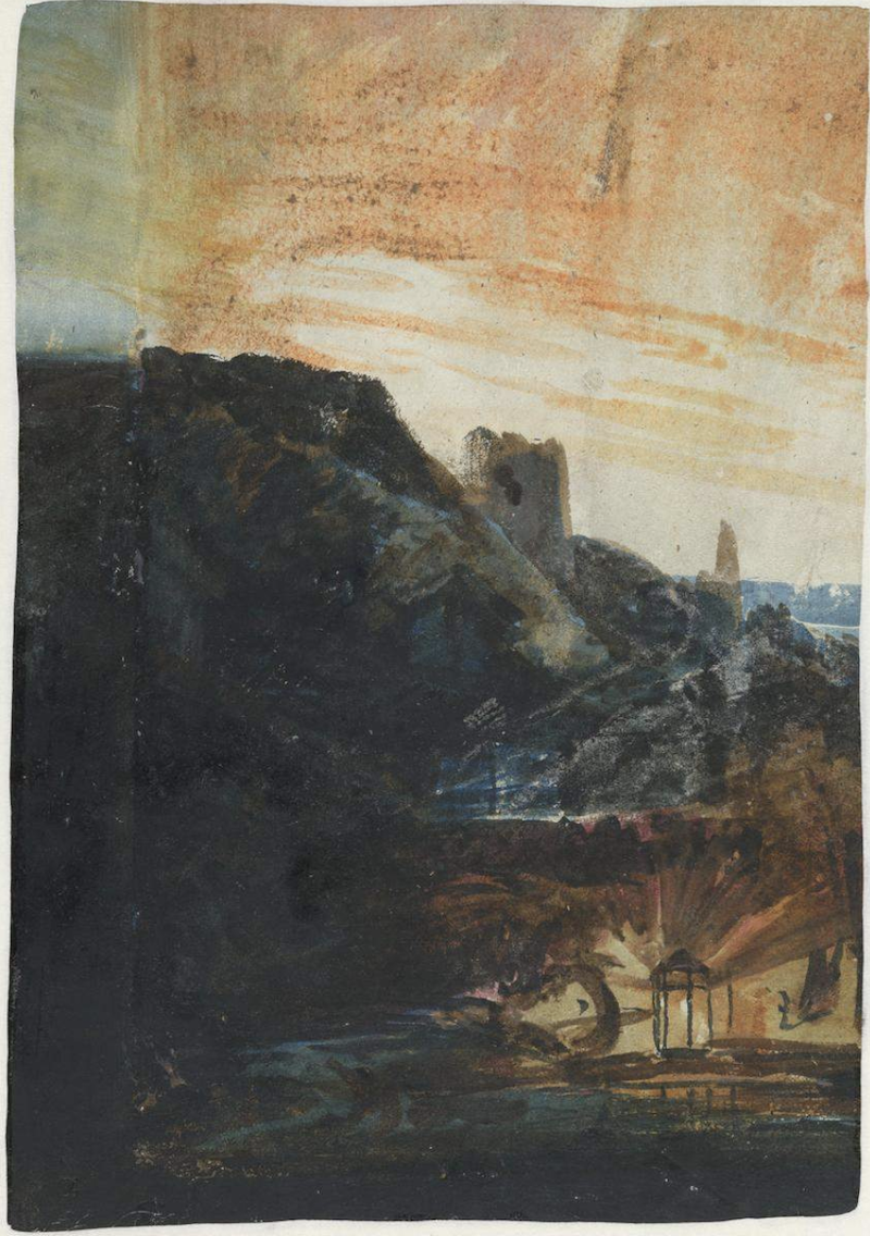透纳,《苔藓覆盖的小屋和棚屋,一位吸烟的男子和一盏灯笼》,1794-1795年