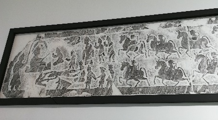 图4 绥德县白家山村画像石拓片及其局部(笔者拍摄)