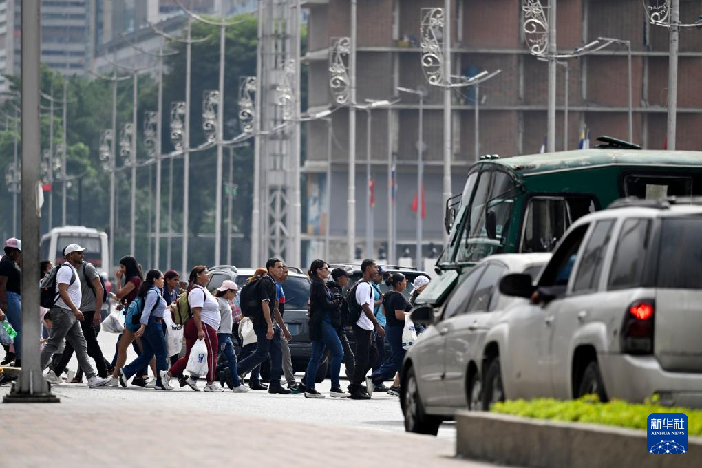 12月2日,在委内瑞拉首都加拉加斯,行人在早高峰时段穿过玻利瓦尔大街。新华社记者 李木子 摄