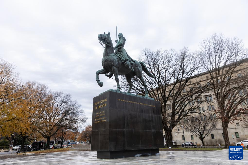 这是12月2日在美国首都华盛顿拍摄的委内瑞拉民族英雄、南美解放者西蒙·玻利瓦尔的骑马雕像。新华社记者 胡友松 摄