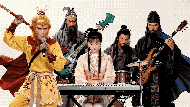孙悟空担任主唱, 关羽负责电吉他,林黛玉坐在键盘前,武松打鼓,曹操当贝斯手,定妆照搞定后, 那便是最简单的动起来环节,两分钟后, 一场跨越时空的摇滚现场就诞生了。