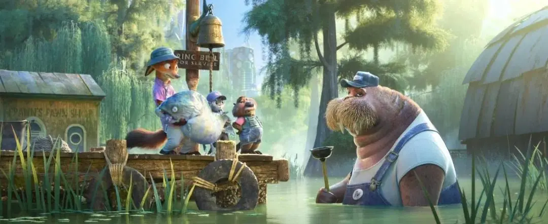 不得不提的是,《疯狂动物城2》展现出了一个更为辽阔的世界观,版图从撒哈拉广场、冰川镇、雨林区与草原,延伸至爬行动物生存的“湿地市场”——这里生存着断尾的蜥蜴、蜕皮的变色龙,存在着“鬼市”般的爬行动物酒吧。不光是蛇盖瑞,那些生存于阴暗处的爬行动物,不仅是生态链的一环,更是现实中长期失语的边缘群体的镜像。