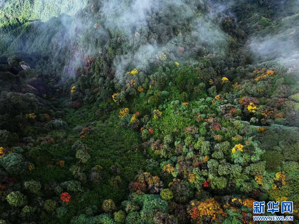 初冬时节的云南腾冲粉竹坝,层林尽染,五彩斑斓(11月8日摄)。新华网发(赵辉 摄)