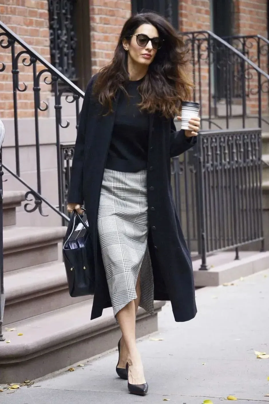 Amal尤其偏爱成套穿搭,这也是职场人最稳妥的选择——正式、利落。与常见的黑、灰、藏蓝不同,她更常选择浅色系,在保留专业度的同时脱颖而出。她衣柜中的连衣裙与大衣,大多强调高腰线与直筒廓形,精准强化“女强人”的身体语言。
