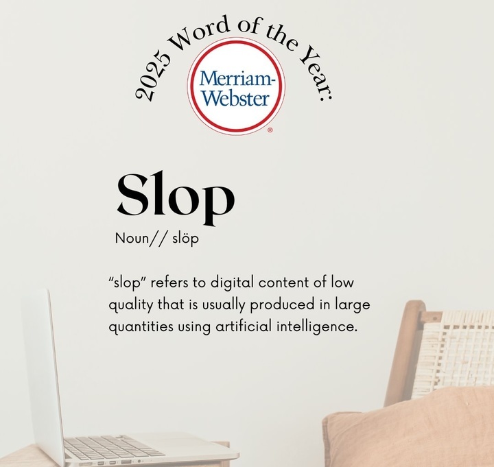 韦氏词典(Merriam-Webster)发布了 2025 年的年度词汇:Slop。