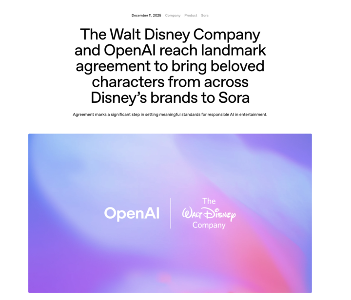 毕竟,这家造梦工厂的护城河,是人类最极致的才华、最细腻的情感连接和最不可替代的 IP 故事。如果连米老鼠和艾莎女王都开始由算法批量生产,那么「创意」二字将一文不值。可就在不久前,迪士尼表示已与 OpenAI 达成协议,不仅计划将 Sora 生成的视频引入其流媒体平台,还向 OpenAI 进行 10 亿美元的股权投资,并获得购买额外股权的认股权证。
