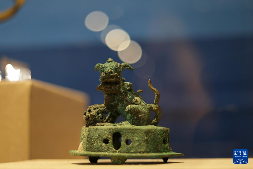 这是12月17日在墨西哥首都墨西哥城举行的马尼拉大帆船主题展上拍摄的中国明代的香炉盖。新华社记者 李梦馨 摄