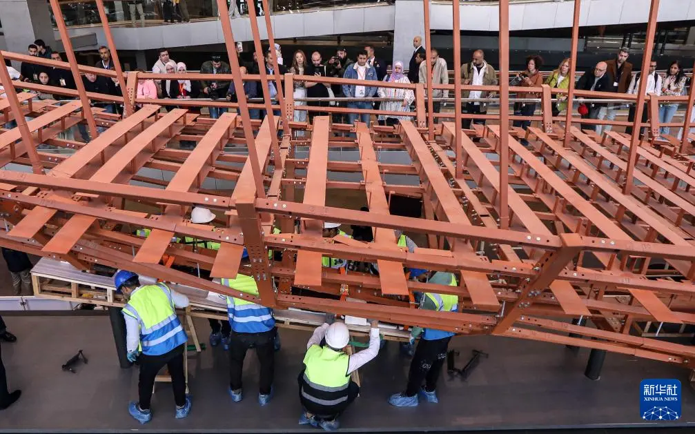 据悉,游客可在现场观看太阳船的组装过程。大埃及博物馆馆长艾哈迈德·古奈姆对新华社记者表示,此举能让观众直观了解文物修复过程的各个阶段,实现“视觉体验与知识获取的融合”。“这一做法标志着现代博物馆展览理念的重要提升。”