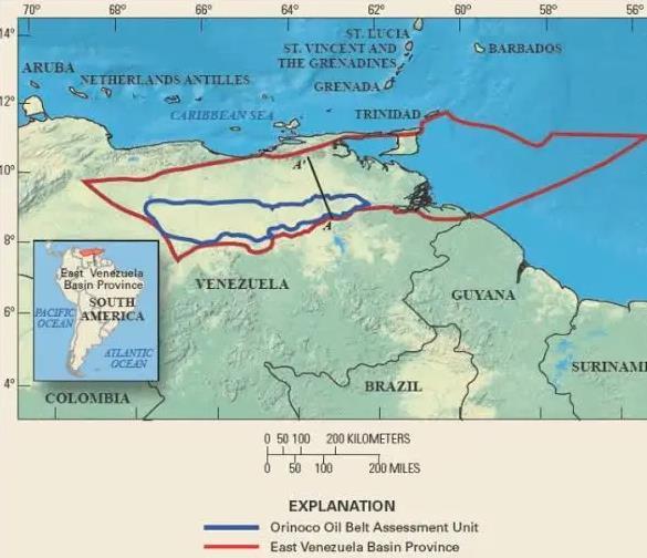 蓝线区域内的为奥利诺科石油带