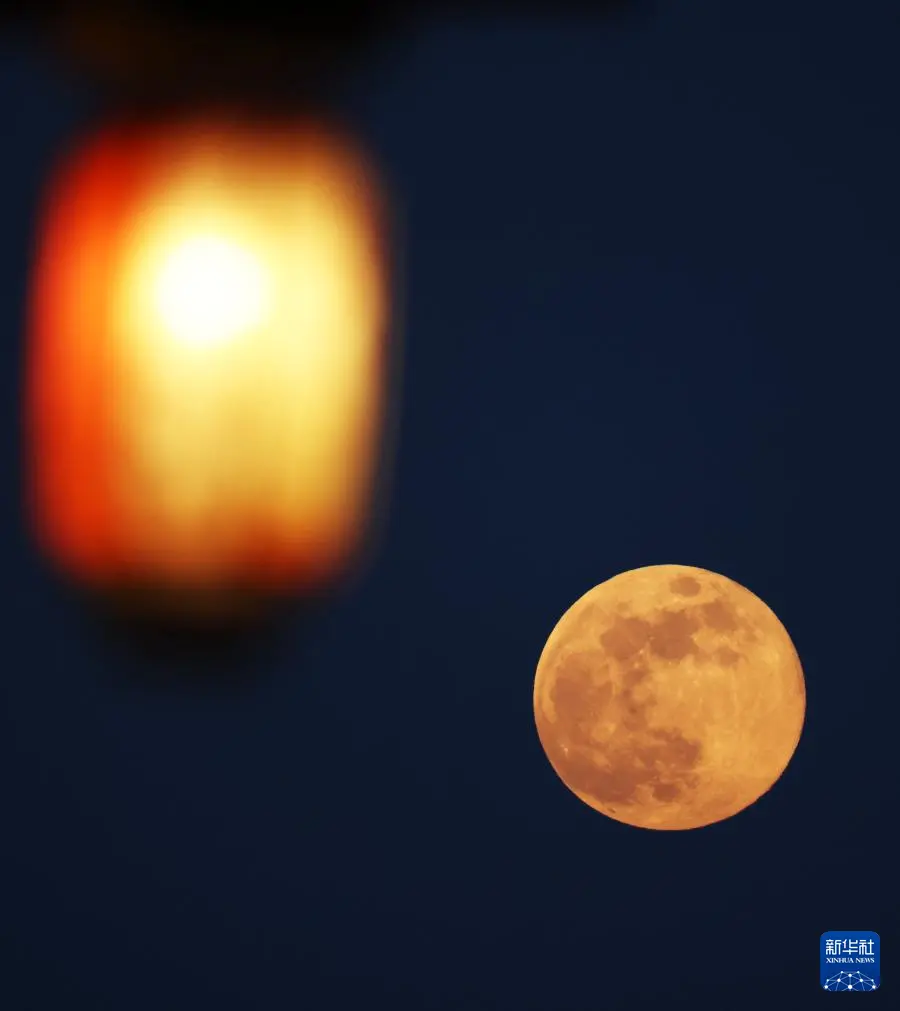 1月3日在北京拍摄的月亮和传统灯饰。