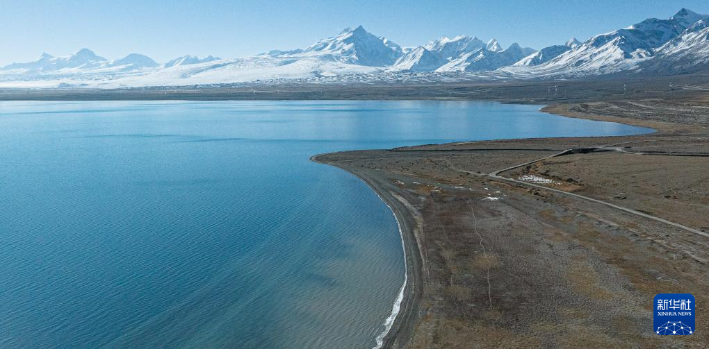 时值冬季,佩枯错的蔚蓝湖水与巍峨雪山相映成趣,构成一幅美丽的自然画卷。