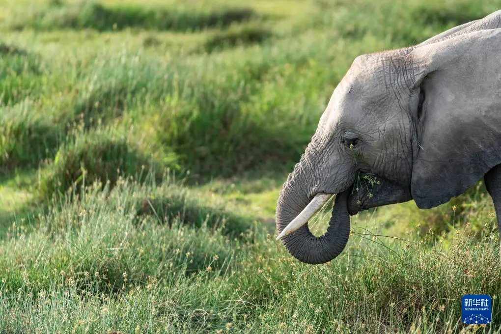 这是1月8日在肯尼亚安博塞利国家公园拍摄的大象。