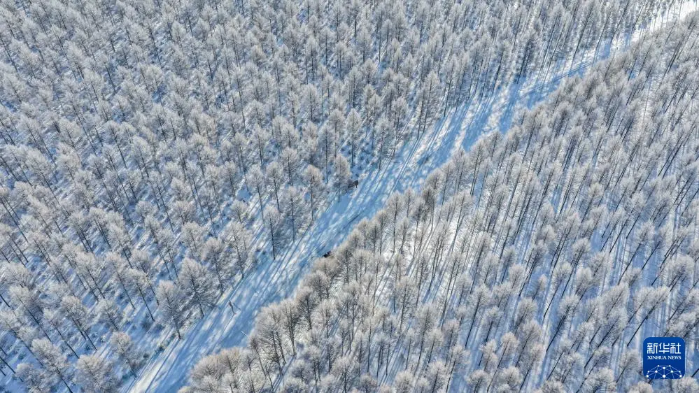 冬日,位于河北省承德市围场满族蒙古族自治县的塞罕坝国家级自然保护区银装素裹,美景如画。