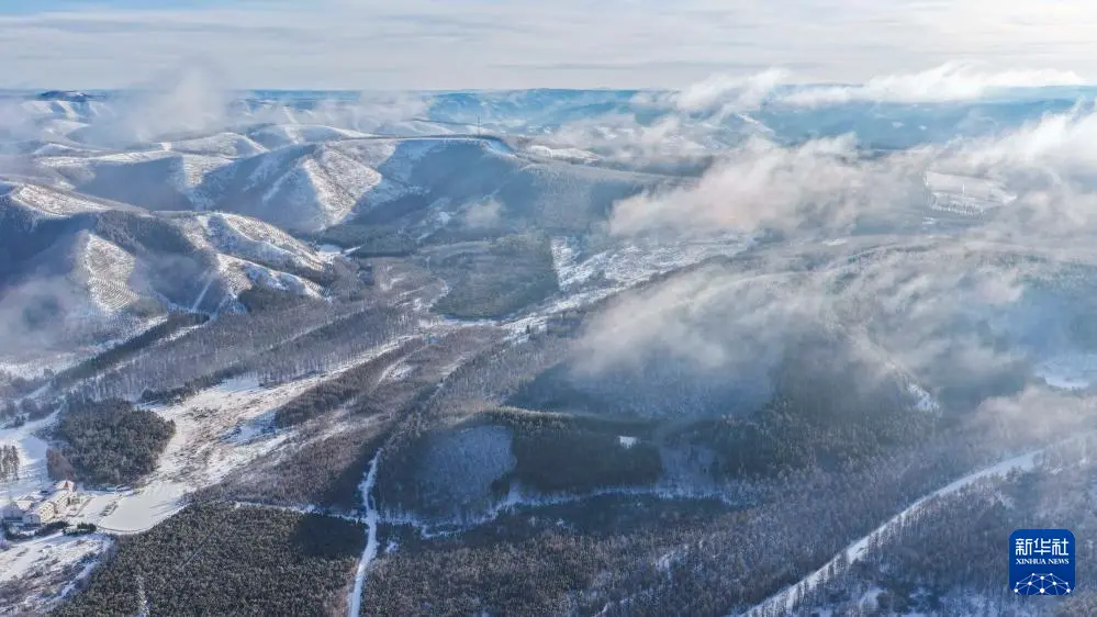 1月10日拍摄的塞罕坝国家级自然保护区一景(无人机照片)。