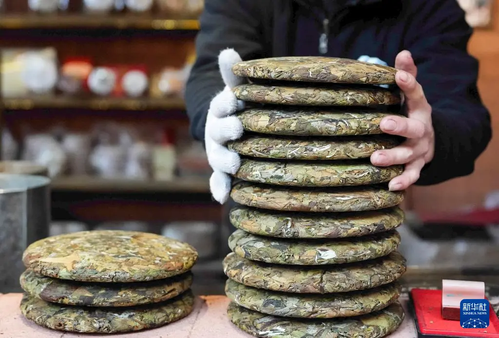 这是1月14日在那柯里村拍摄的普洱茶饼。